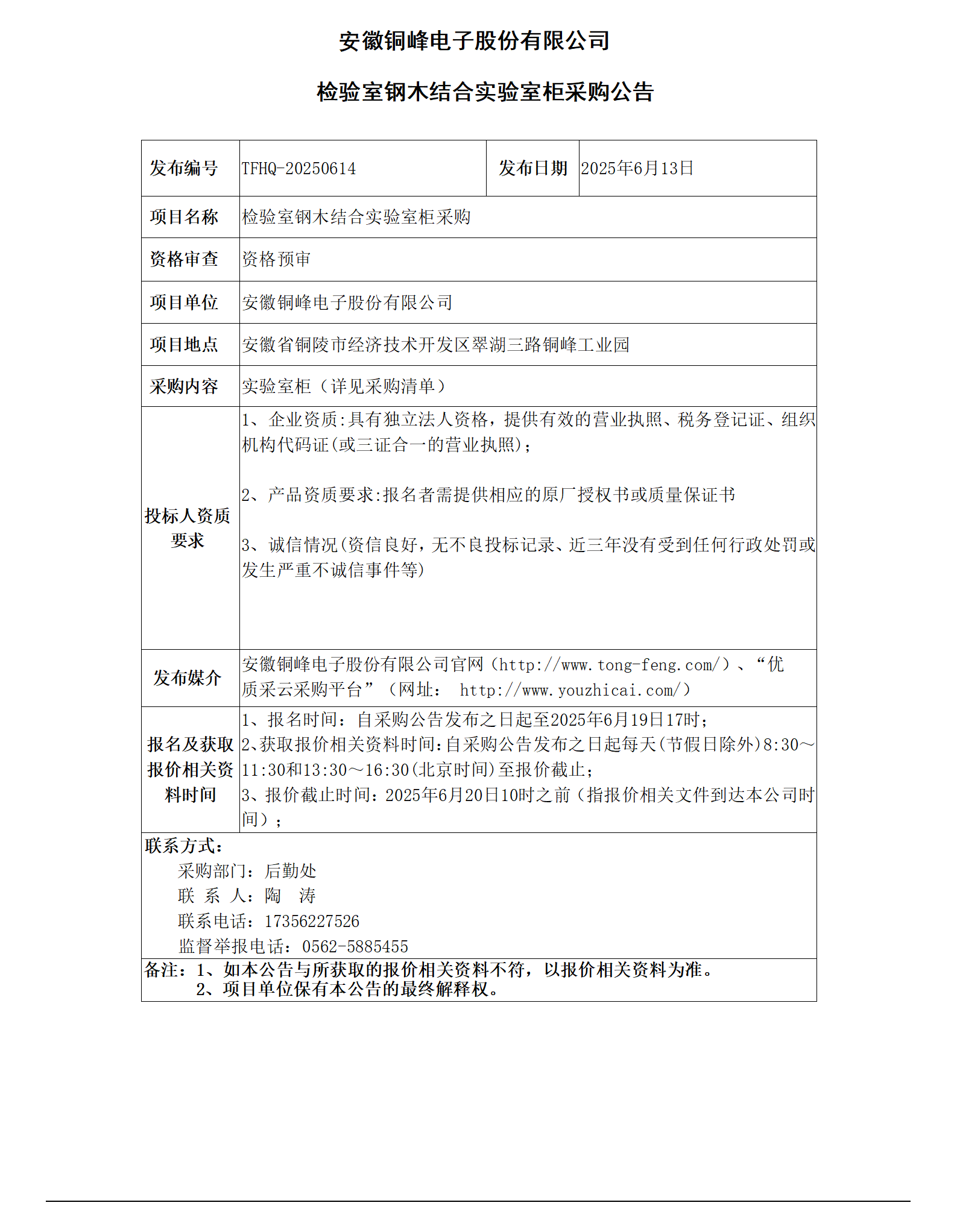 安徽銅峰電子股份有限公司 (檢驗(yàn)室鋼木結(jié)合實(shí)驗(yàn)室柜采購公告)_01