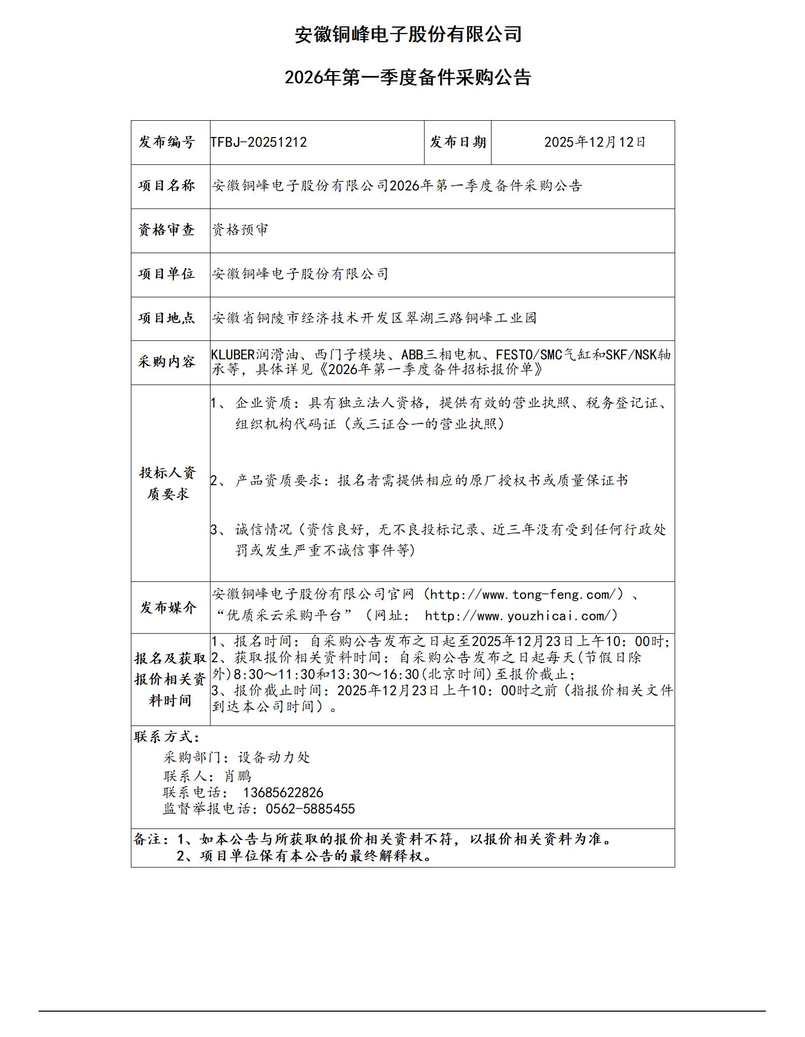 安徽銅峰電子股份有限公司 (備件公告)_01