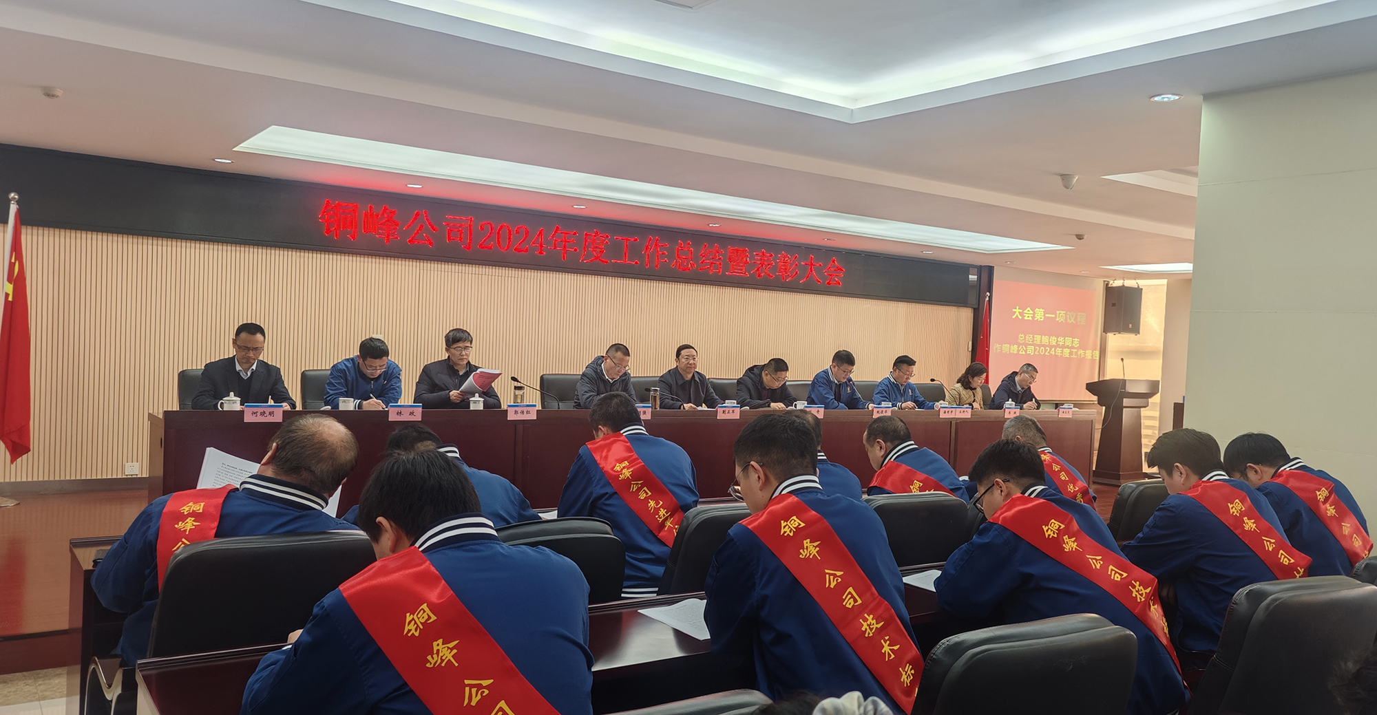 1月22日,公司在辦公樓二樓職教室隆重召開2024年度工作總結(jié)暨表彰大會。銅陵經(jīng)開區(qū)黨工委委員、管委會副主任蒯正軍,銅陵大江投資控股有限公司董事長劉奇,公司黨政領(lǐng)導(dǎo)班子成員,各經(jīng)營單位與職能部門管理人員,部分職工代表、新進(jìn)大學(xué)生,以及先進(jìn)集體、先進(jìn)個人代表等參加會議。公司黨委副書記潘世宇主持會議。