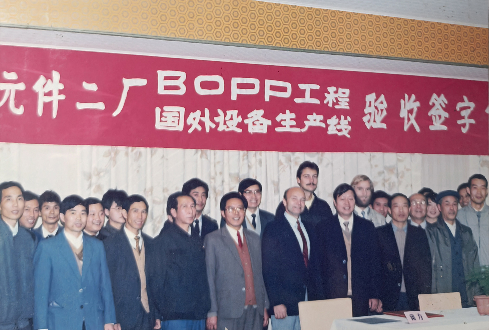 銅峰“老一線”于1989年建成投產(chǎn)。上世紀(jì)80年代,當(dāng)時國內(nèi)電容器用聚丙烯膜幾乎完全依賴進(jìn)口,嚴(yán)重制約了我國電容器等相關(guān)產(chǎn)業(yè)的發(fā)展。銅峰公司前身銅陵市無線電元件二廠積極響應(yīng)國家需求,決定從國外引進(jìn)雙向拉伸電容器用聚丙烯膜生產(chǎn)線。1985年項目啟動,經(jīng)過一系列籌備工作,1986年獲得國家計委批準(zhǔn)立項,并被列入國家 “七五” 機械電子工業(yè)重點技改項目。1988年,主線和相關(guān)輔助設(shè)備成功引進(jìn)。經(jīng)過一年多的緊張建設(shè),1989年生產(chǎn)線正式投產(chǎn)?!袄弦痪€”的建成投產(chǎn),是銅峰發(fā)展史上具有重要意義的轉(zhuǎn)折點。該線加速了銅峰公司產(chǎn)品結(jié)構(gòu)調(diào)整和轉(zhuǎn)型步伐,并由此形成了全國唯一的“電工三膜”(電容薄膜、金屬化膜和薄膜電容器)一條龍的生產(chǎn)格局,使企業(yè)的經(jīng)濟(jì)規(guī)模和技術(shù)水平躍上一個新臺階。